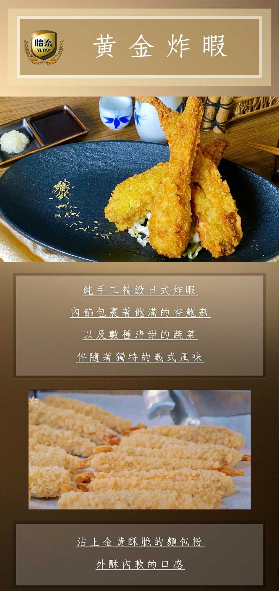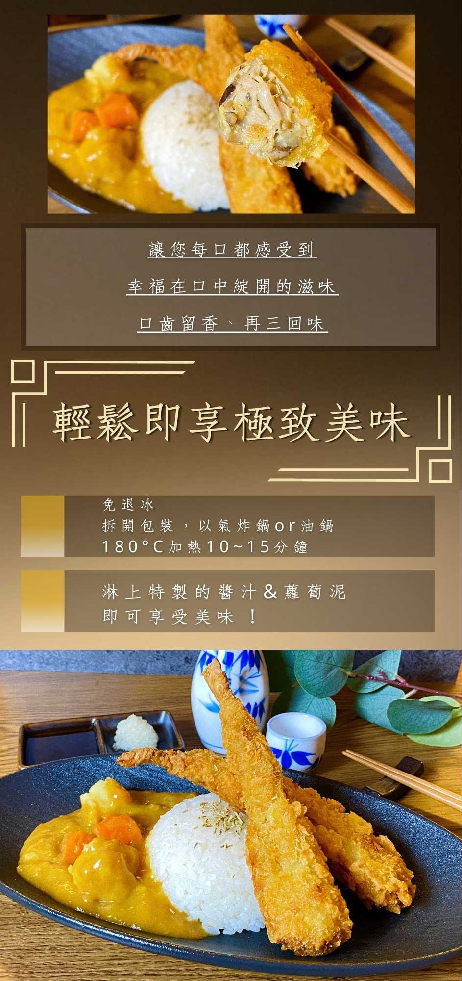 | 調理方式 : | 黃金蝦以中火130度油炸5分鐘.炸成金黃色浮起後 將白色蘿蔔泥包解凍後.倒入特調醬汁包.即可當沾醬食用 |