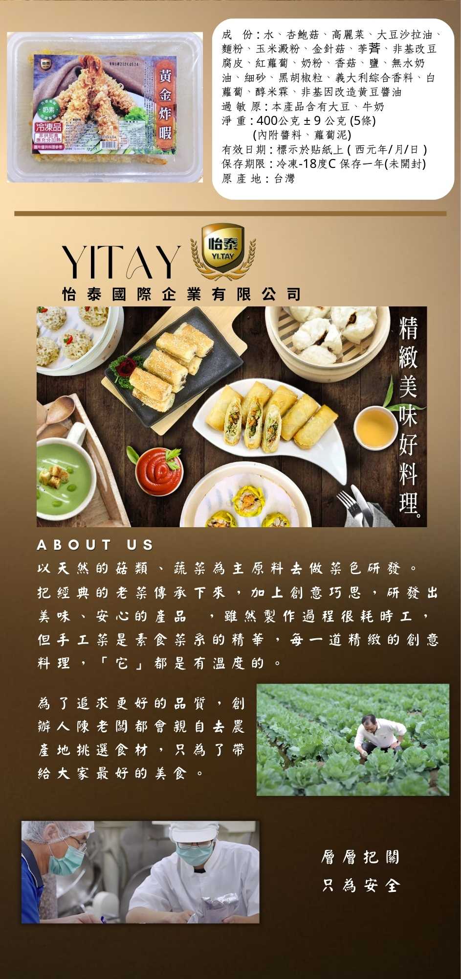 | 成 份 : | 水、杏鮑菇、高麗菜、大豆沙拉油、麵粉、玉米澱粉、金針菇、荸萕、非基改豆腐皮、紅蘿蔔、奶粉、香菇、鹽、無水奶油、細砂、黑胡椒粒、義大利綜合香料、白蘿蔔、醇米霖、非基因改造黃豆醬油 |